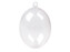 Tato transparentní vejce o rozměru 4,5 x 6 cm jsou rozdělená na dvě části, které lze snadno spojit a pomocí očka zavěsit. Díky tomu můžete své výtvory elegantně umístit například na větvičky nebo do okna. Průměr průvleku pro zavěšení je 2,5 mm, což umožňuje zavěšení na různé provázky či stužky.
