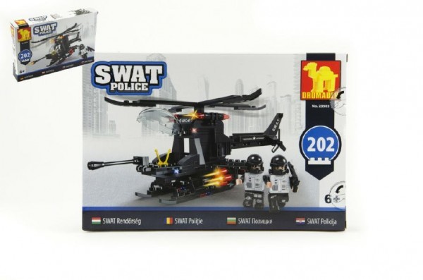 Stavebnice Dromader SWAT Policie Vrtulník 202ks plast v krabici 32x21,5x5cm