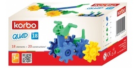 Ze stavebnice Korbo 18 Quad se dá dále postavit pes, kachna, letadlo s vrtulí, dělo, auto, parník a mnoho dalšího. A kromě stavby podle návodů lze stavět cokoliv vás nebo děti napadne. Malá krabička je také vhodná na cesty na zabavení těch nejmenších.