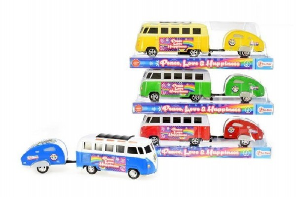 Autobus s karavanem plast 14cm plast 8cm na setrvačník asst 4 barvy v krabičce