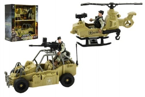 Vojenská sada voják+vrtulník+auto plast v krabici 24x26x10cm