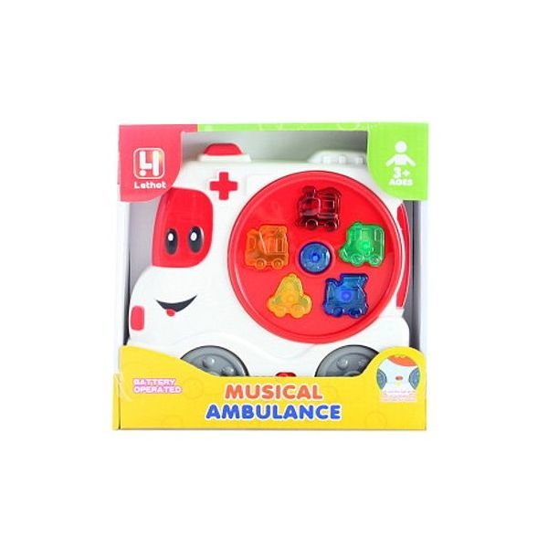 Sanitka po stisknutí tlačítek vydává zvuky různých dopravních prostředků a svítí. Napájení na 2x AA baterie (nejsou součástí balení). Rozměry cca 16 x 16 cm. Rozměry balení cca 17 x 17 cm. Věk 3+