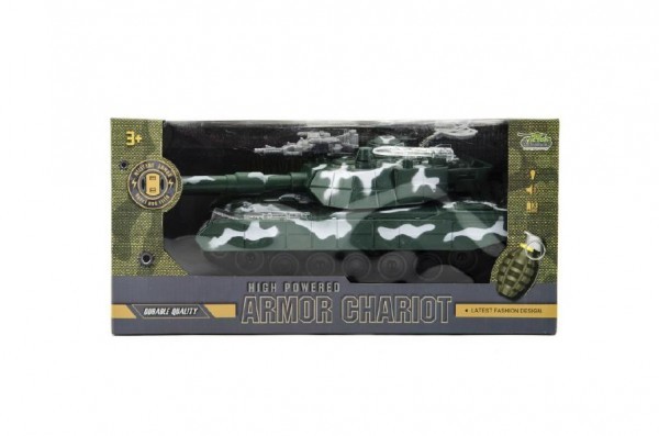 Tank se světelnými a zvukovými efekty se po nárazu na překážku otočí a vyhledá volnou trasu. Nepřekvapí ho žádná překážka. Vhodné od 3 let.