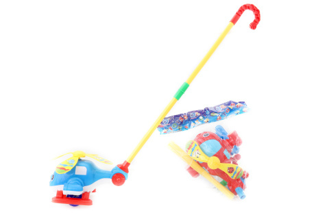 Plastová helikoptéra, kterou lze po složení tlačit a helikoptéra bude točit vrtulí a cinkat. Rozměry helikoptéry cca 21 x 14 cm. Rozměry balení cca 26 x 28 x 14 cm. Věk 3+ číst celé