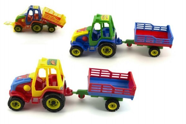 Traktor s vlekem plast 37cm asst 3 barvy v síťce