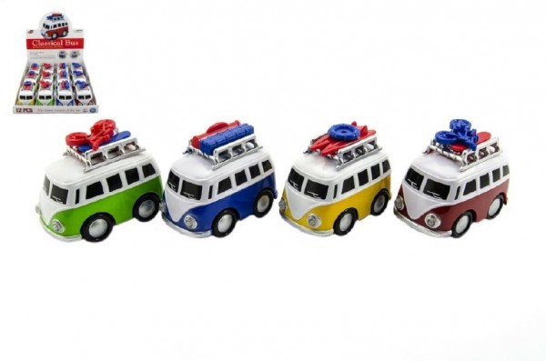 Autobus plast 10cm na baterie se světlem a zvukem na setrvačník asst 4 barvy 12ks v boxu