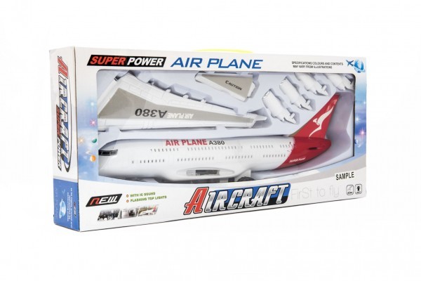Letadlo plast 40cm na setrvačník na baterie se zvukem se světlem v krabici 45x20x7cm