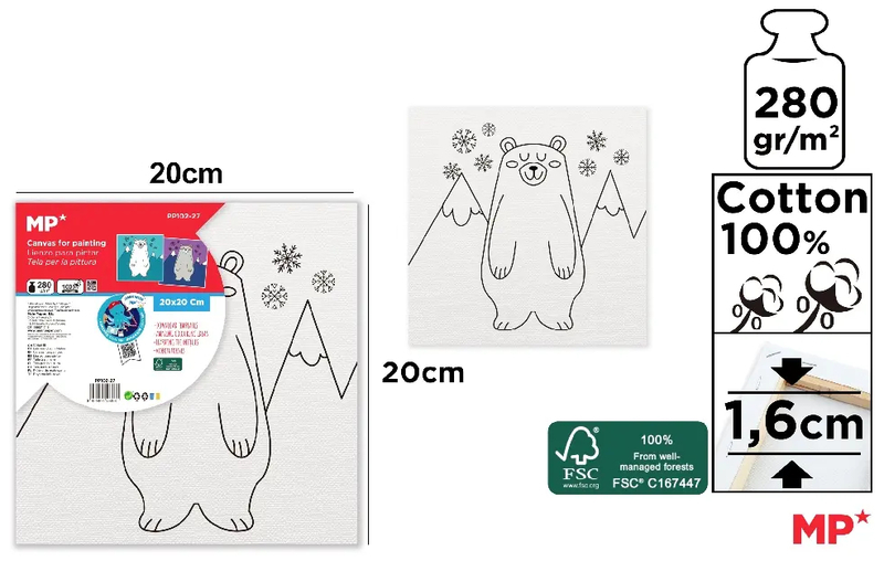 Podobrazie bawełniane 20 x 20cm z nadrukiem niedźwiedź PP102-27, Main Paper