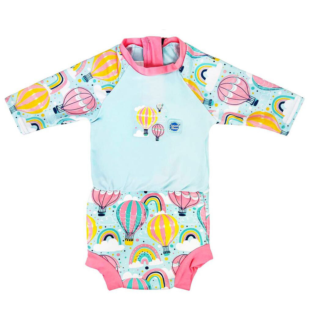 Sluneční obleček Happy Nappy ochrání vaše miminko před UV zářením. Jedná se o UV obleček s integrovanými kojeneckými plavkami, do kterých nepotřebuje žádnou další plenku a zároveň s UV ochranou proti slunci, s faktorem 40+ Sluneční obleček Happy Nappy ochrání vaše miminko před UV zářením. Jedná se o UV obleček s integrovanými kojeneckými plavkami, do kterých nepotřebuje žádnou další plenku a zároveň s UV ochranou proti slunci, s faktorem 40+Ideální pro hraní v bazénu, na zahradě nebo jinde na slunci. Vrchní část oblečku je lehká a chladivá, vyrobena z nylon-lykry a pokrývá nejvíce ohrožené oblasti sluncem (ramena, krk, ruce), takže vaše miminko je chráněno i ve vodě. Spodní část jsou integrované plavky Happy Nappy, které spolehlivě ochrání proti úniků pevných částic do vody. Jsou vyrobeny z 1 mm pružného, elastického neoprenu s měkkým, přiléhavým střihem a širokým elastickým lemem kolem stehýnek. Přizpůsobí se tělíčku dítěte a díky tomu nedojde k otlačení pokožky. Plavky můžete opakovaně používat narozdíl od jednorázových plaveckých plen (velká úspora) a zároveň jsou šetrné k životnímu prostředí. Běžná jednorázová plena nasákne, ztěžkne a znesnadňuje dětem pohyb což se s plavečkami Happy Nappy stát nemůže.Materiál je velmi pružný a kvalitní, nevybledne. Je odolný vůči chlóru, takže ani při opakovaném nošení neztratí svůj tvar ani ochrannou elasticitu.Zip na zadní straně usnadňuje oblékání a vysvlékání. Ideální do bazénu, k moři nebo na brouzdaliště. Klíčové vlastnosti:Rukávy 3/4 pro lepší ochranu před sluncem (UV faktor 40+) 2 v 1 Uv obleček s integrovanou plaveckou plínkou. Rychlé zapínání na zip na zádech pro snadné převlékáníVelikosti: vybírejte podle rozměrů, věk je pouze orientační. Pokud se rozhodujete mezi 2 velikostmi, vyberte tu větší.Vel. S ( 0 - 4 měs), obvod hrudníku: 36 - 42 cm, obvod stehýnek: 18 - 24 cmVel. M ( 3 - 8 měs), obvod hrudníku: 40 - 46 cm, obvod stehýnek: 20 - 26 cmVel. L ( 6 - 14 měs), obvod hrudníku: 43 - 47 cm, obvod stehýnek: 22 - 28 cmVel. XL ( 12 - 24 měs), obvod hrudníku: 45 - 51 cm, obvod stehýnek: 24 - 30 cmVel. XXL ( 2 - 3 roky), obvod hrudníku: 44 - 52 cm, obvod stehýnek: 26 - 33 cmSložení: - vrchní část těla: 50% Nylon, 20% elastan, 30% polyester- spodní neoprénová část: 100% neopren, lemy: 80% polyester ,20% elastanÚdržba: pouze ruční praní ve studené, čisté vodě, nežehlit a nesušit v sušičce