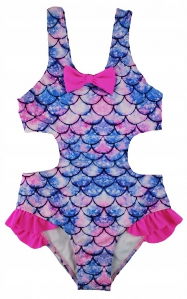 Dívčí jednodílné plavky s volánky - Noviti, Mašlička, modro/růžové, vel. 128/134; 128-134 (7-9r)