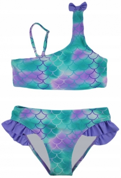Dívčí dvoudílné plavky s volánkem - Noviti, Mašlička, fialovo/zelené, vel. 140/146; 140-146 (9-11r)