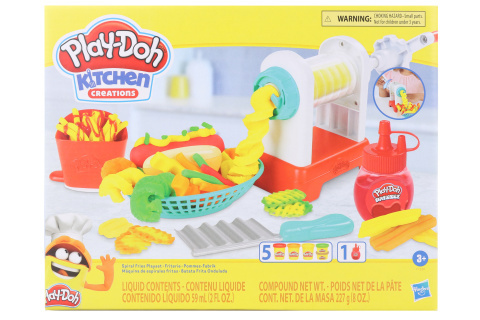 Zatočené, vroubkované, tenoučké nebo mřížkovité - ve světe kuchyňských výtvorů Play-Doh najdete všechny druhy hranolek. Modelína Play-Doh bude krásně procházet průhledným hranolkovačem a tvořit zatočené nebo vroubkované hranolky. Vytlačte rovné hranolky přenosnou nádobou, nakrájejte vroubkované hranolky nožem a vytvořte mřížkované hranolky. Vše naložte do košíku a přidejte všechny možné omáčky a kečupovou modelínu Drizzle. Připravte zkrátka dokonalé hranolkové menu přesně podle sebe!