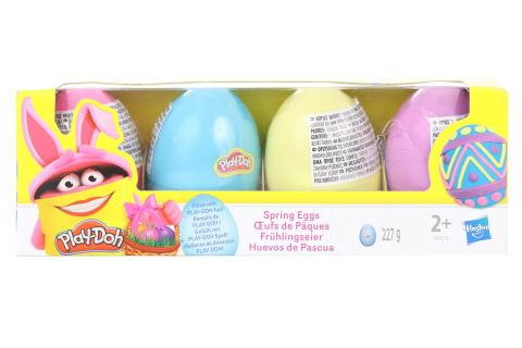 Otevřete balík vajec a začněte se zábavným modelováním! Popusťte uzdu své fantazii se čtyřmi různými barvami, které máte na výběr. Skvělý nápad pro jarní hledání vajec a jarní košíky! Obsahuje 4 vejce naplněná značkovou modelovací hmotou Play-Doh. Věk 2+