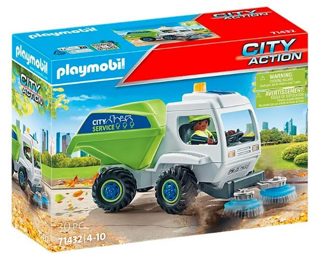 Utrzymuj ulice miasta w czystości, aby samochody mogły bez przeszkód się przemieszczać. Zestaw zawiera zamiatarkę z obracającymi się szczotkami i figurkę PLAYMOBIL w czapce. Szczotki zamiatarki obracają się automatycznie, gdy tylko dotkną podłoża. W celu opróżnienia można otworzyć tylną klapę i przechylić pojemnik. Dach zamiatarki jest zdejmowany, co ułatwia umieszczenie w niej figurki. Dzięki realistycznym zestawom PLAYMOBIL dzieci w wieku od 4 lat mogą odtworzyć we własnym pokoju codzienne życie w mieście.