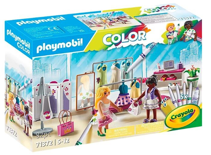 Zestaw PLAYMOBIL Color: Butik z odzieżą zaprasza dzieci na zakupy. Do odkrycia i przymierzenia dostępne są różne kreacje. W przebieralni figurki można wielokrotnie przebierać, a ubrania, torby i akcesoria można ze sobą łączyć.