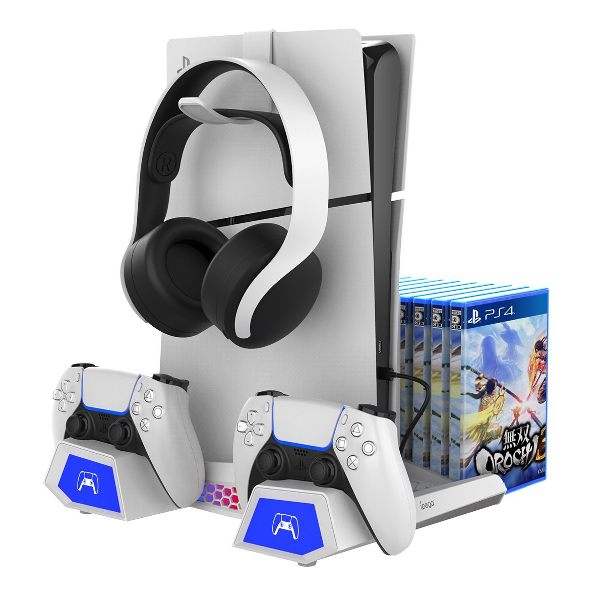 iPega P5S023 Multifunkční Nabíjecí RGB Stojan s Chlazením pro PS5/PS5 Slim White (Pošk. Balení)