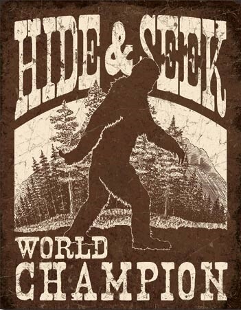 Plechová cedule Big Foot - Hide & Seek, 32 × 41 cm