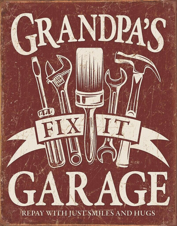 Plechová cedule Grandpa's Garage, 32 × 41 cm