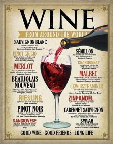 Plechová cedule VÍNO - From Around the World, 31.5 × 40 cm