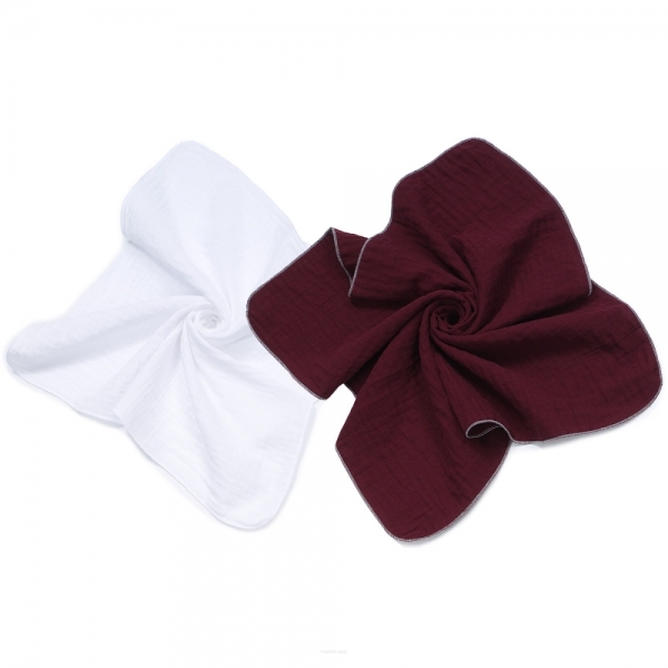Mušelínové plenky Lux, 2D sada 60x60 cm, bílá/bordó