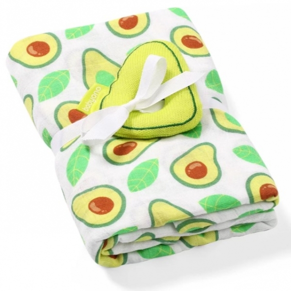 Plenka, osuška 120x120cm, bambus/Mušelín Avokádo, muchláček + chrastítko zelená/bílá, 0 m+