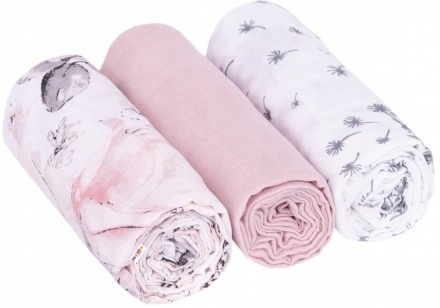 Baby Nellys Mušelínové pleny 3ks Lux - Květy, 70 x 80 cm, pudrová/bílá