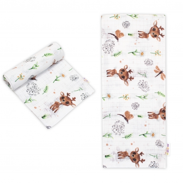 Kvalitní bavlněná plenka - Tetra Premium, 70x80 cm - Srneček na louce, bílá/hnědá - 1 ks