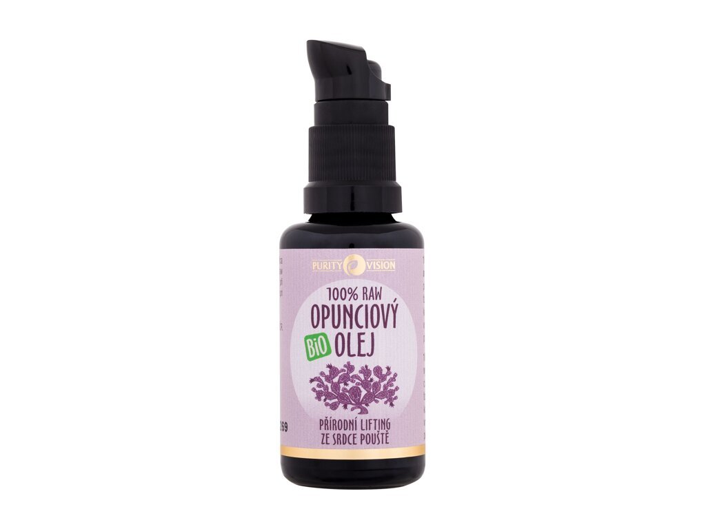 100% Raw Bio Opunciový olej PURITY VISION® je právem považován za účinnou zbraň proti stárnutí pleti a tvorbě vrásek. Své jedinečné vlastnosti získává díky obsahu vitalizujících a regeneračních látek, jakými jsou esenciální mastné kyseliny omega 6 a 9 a velké množství přírodního antioxidantu (vitamín E), který chrání pleť před negativními vlivy volných radikálů a zpomaluje stárnutí. Olej dále obsahuje aminokyseliny, které podporují tvorbu kolagenu a urychlují tak regeneraci buněk. Při pravidelném používání Opunciového oleje se vaše pokožka znatelně rozzáří a zpevní.