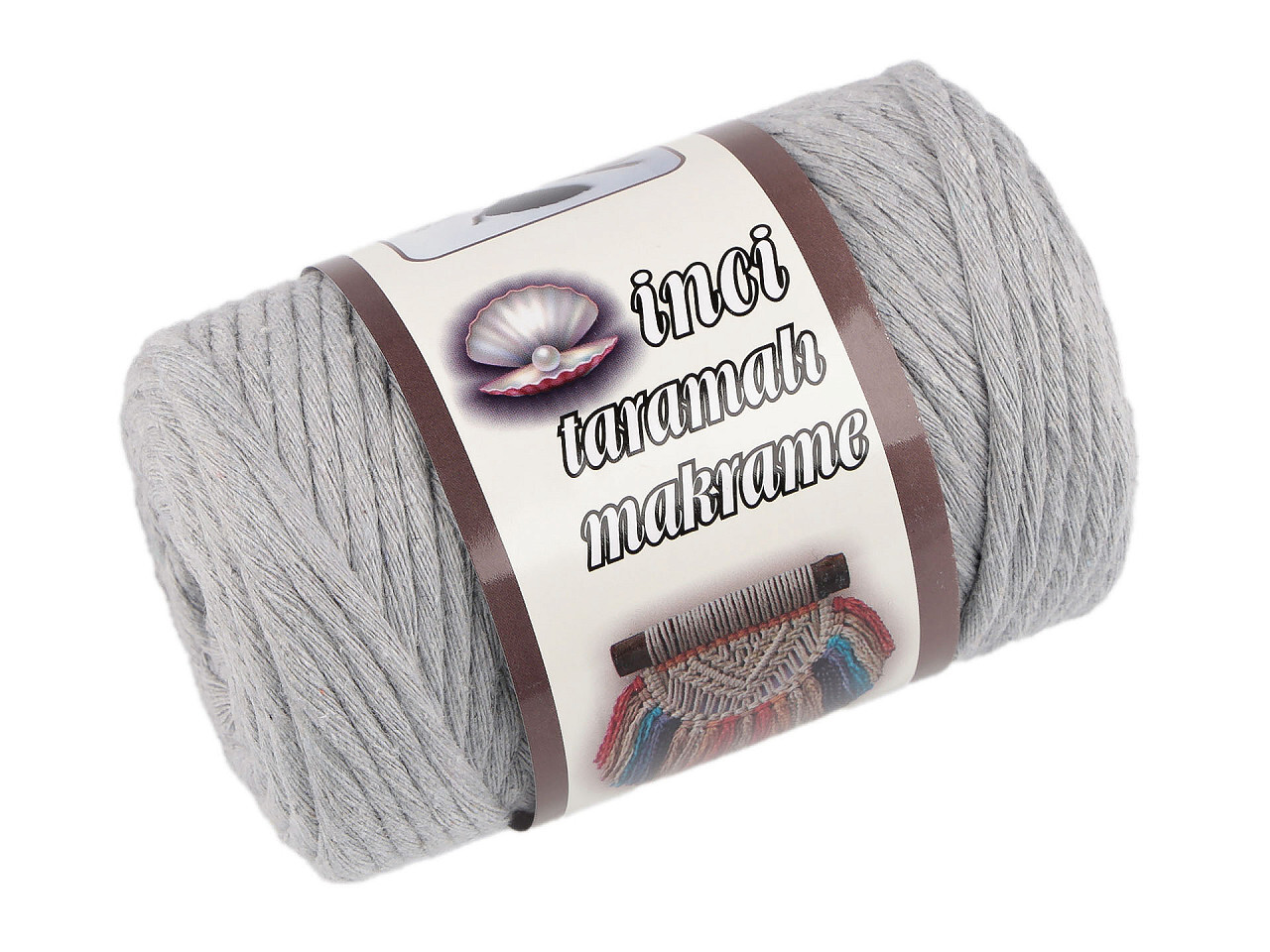 Recyklovaná bavlněná příze macrame Ø5 mm rozčesávací - 1 ks - 34 šedá světlá