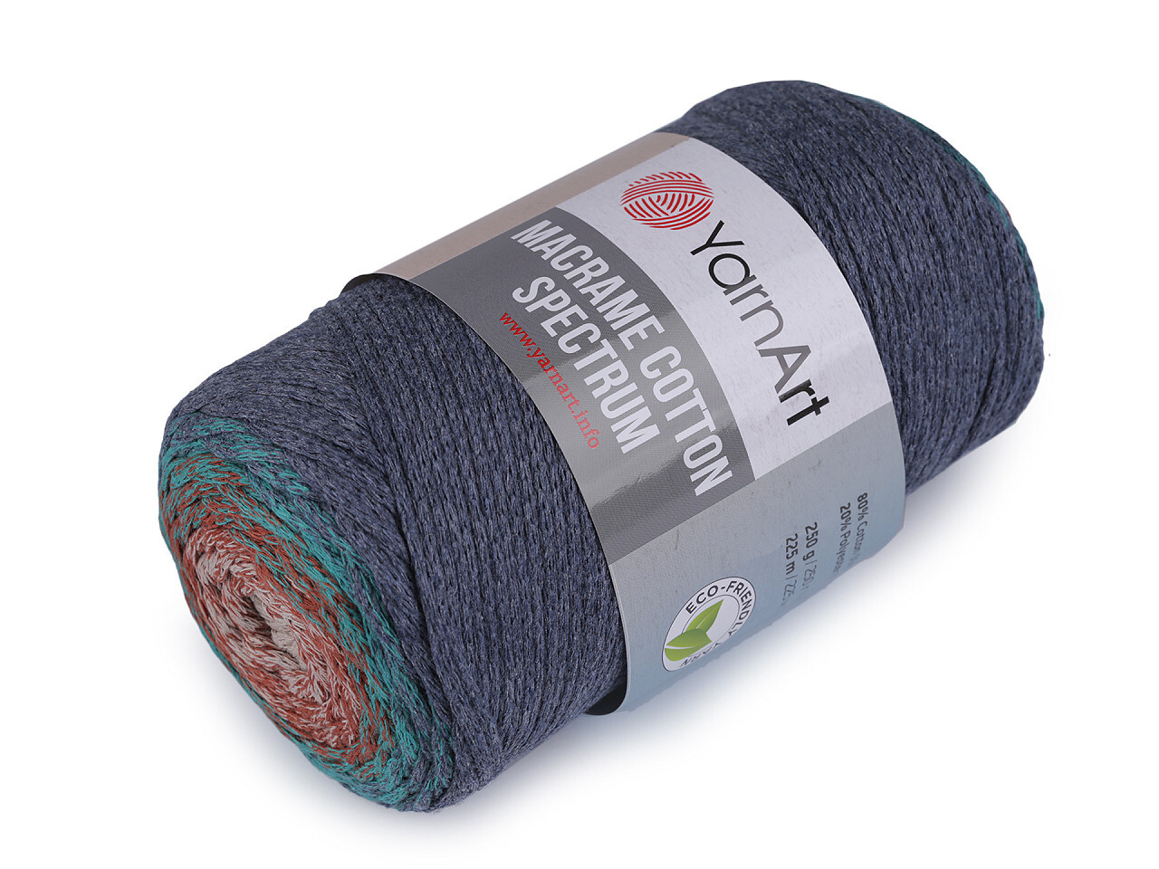 Příze Macrame Cotton Spectrum připomíná provázek. Je zajímavá svými barevnými přechody, se kterými budou všechny výrobky vypadat originálně. Využijete ji na pletení nebo háčkování pufů, košíků, koberečků i tašek, kde úžasně vyniknou její duhové přechody barev.