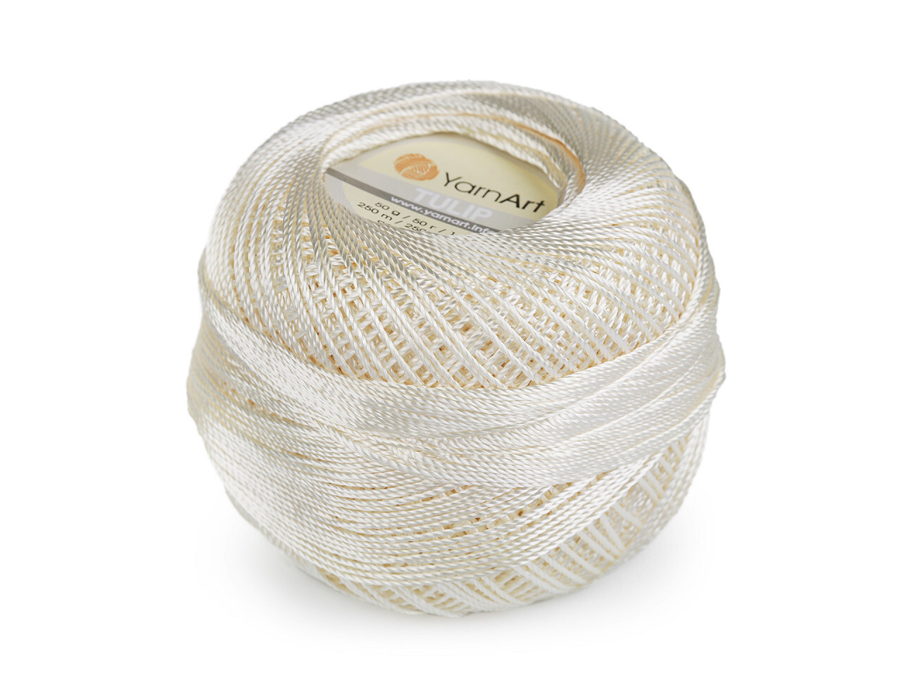 Příze Tulip vyniká vysokým efektním leskem. Je jemná a hladká. Využijete ji na háčkování, pletení, vyšívání (jak ruční, tak strojové), tkaní i kreativní tvorbu šperků. Velikost jehlic: 2,5Velikost háčku: 2,5 číst celé