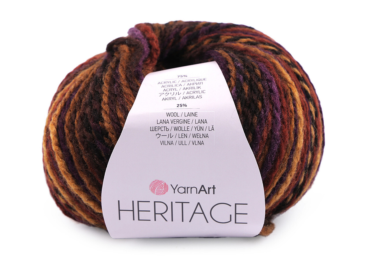 Příze Heritage vyniká svým barevným zpracováním, kdy některá vlákna jsou jednobarevná s jemným přechodem a jiná vlákna jsou stočená ze dvou různě barevných. Díky podílu vlny i zahřeje. Můžete z ní uplést či uháčkovat zajímavé svetry, šály, vesty, hravé ponožky, čepice apod.Velikost jehlic:...