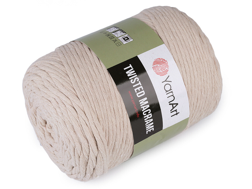 Příze Twisted Macrame je kroucená a připomíná provázek. Využijete ji na pletení nebo háčkování pufů, košíků, koberečků i tašek. Je vhodná také na výrobu macramé dekorací.