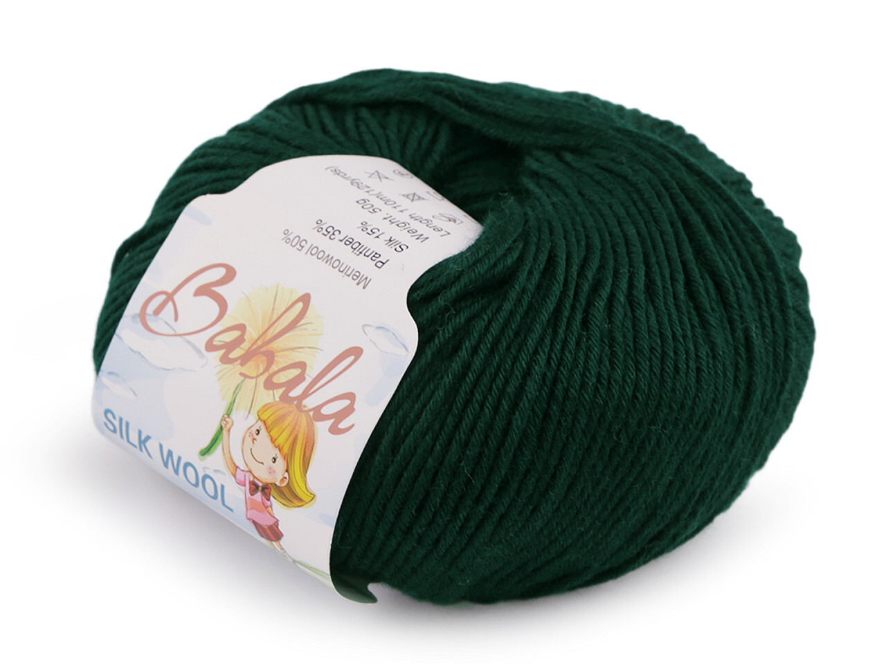 Pletací vlněná, hedvábná příze Babala 50 g - 1 ks - 11 (017) zelená tmavá