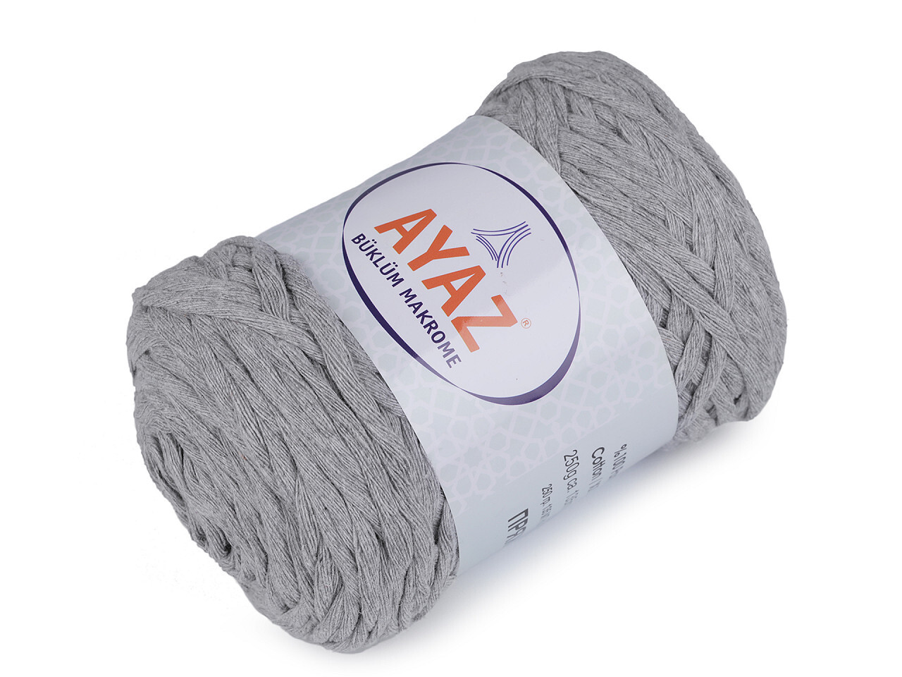 Bavlněná pletací příze Büklüm Makrome 250 g rozčesávací - 1 ks - 5 (1195/161121) šedá světlá