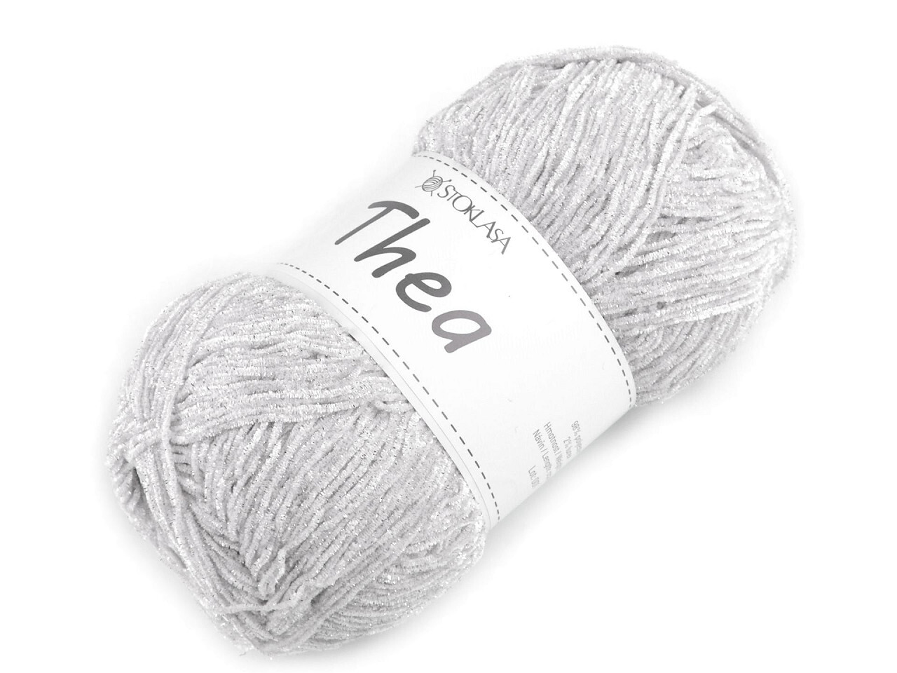 Pletací příze žinylková s lurexem Thea 100 g - 1 ks - 1 šedá nejsvětlější stříbrná