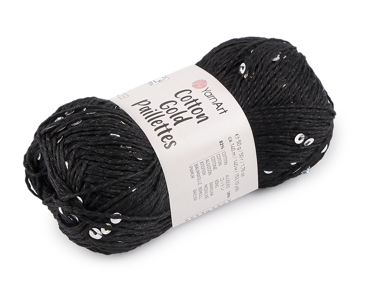 Pletací příze Cotton Gold Paillettes s flitry 50 g - 1 ks - 5 (7101) černá stříbrná