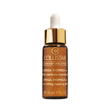 Pleťová péče **Collistar Omega 3 + Omega 6 Nourishing Repairing Oil**. Pleťová péče Collistar Omega 3 + Omega 6 Nourishing Repairing Oil účinně působí proti stárnutí pokožky. Obsahuje Omega 3 a 6 mastné kyseliny, které pomáhají pleť regenerovat, hydratovat a vyživovat. Vitamín E a esenciální oleje pleť chrání a dodávají jí svěží a rozjasněný tón. Dopřejte své pokožce hloubkovou péči a regeneraci. **Použití**: Aplikujte jemnou masáží na obličej a krk.