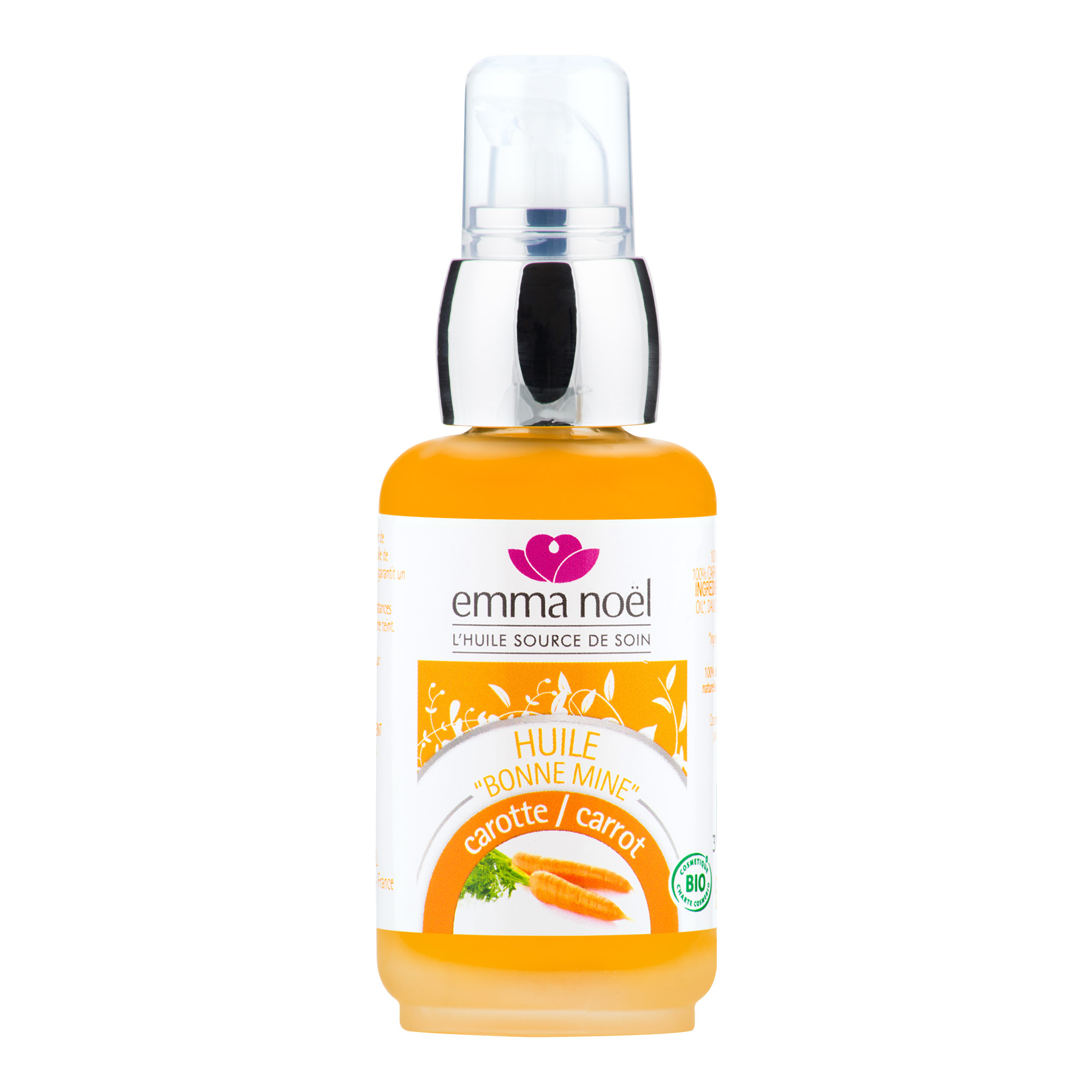 Pleťový olej karotka od EMMA NOËL je složen ze slunečnicového a sezamového oleje a mrkvového macerátu. Sezamový olej obsahuje velké množství zinku, slunečnicový olej se zase může pochlubit obsahem regeneračního lecitinu. Macerát z mrkve je bohatý na obsah vitamínu A a beta-karotenu. Olej má díky macerované mrkvi oranžovou barvu. Výborně se hodí jako příprava pokožky na léto. Můžete ho používat i po opalování pro zvýraznění a prodloužení opáleného vzhledu.