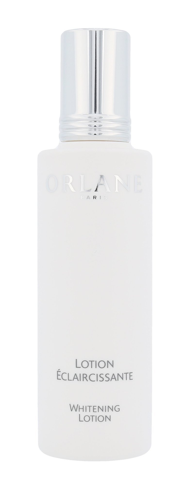 Bělicí tonikum **Orlane Whitening Lotion**. Hydratuje, zjemňuje, propouští do pleti aktivní bělicí složky a stahuje póry. Přípravek je vhodný pro všechny typy pleti s pigmentovými skvrnami. Obsahuje Arbutine Whitening System, 5 aktivních látek, které zastavují produkci melaninu. Komplex B21 Bio-Energic® stimuluje buněčnou energii, regeneruje, vyhlazuje, zpevňuje a hydratuje. **Použití**: Aplikujte pomocí kosmetického vatového tamponu a pleť důkladně tonizujte.