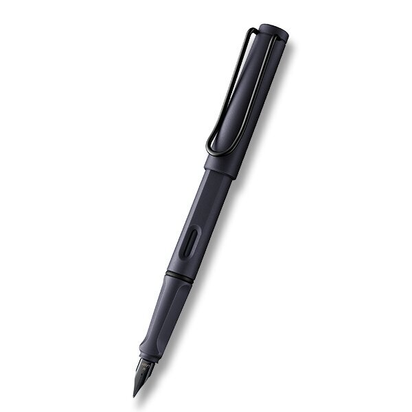 Plnicí pero Lamy Safari v provedení Steel Black má tělo z tvrzeného ABS plastu, nasazovací víčko a odpružený kovový klip. Úchopová zóna je ergonomicky upravená v černé barvě. Hrot z nerezové oceli potažený černou barvou.