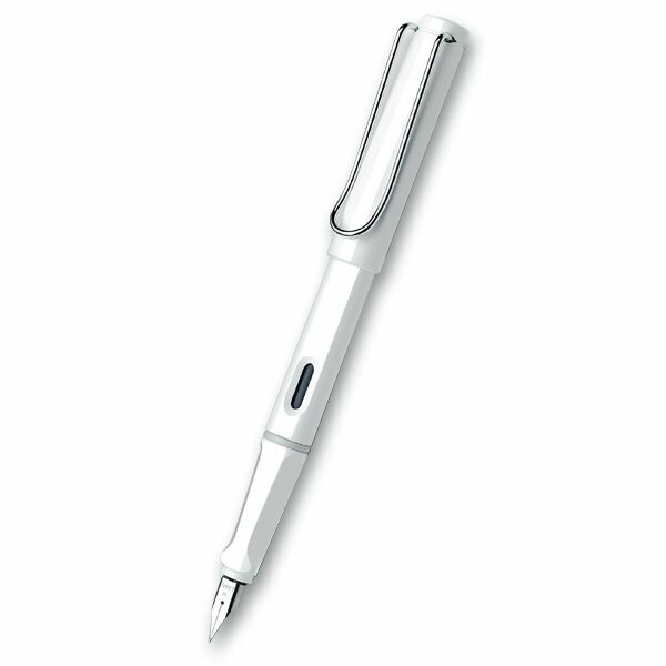 Plnicí pero Lamy Safari v provedení Shiny White má tělo z tvrzeného ABS plastu, nasazovací víčko a odpružený kovový klip. Úchopová zóna je ergonomicky upravená, hrot je z nerezové oceli.