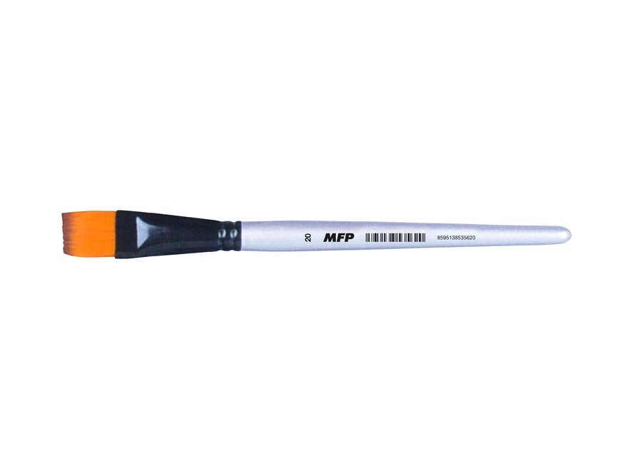 Štětec plochý s jemným syntetickým vlasem a dřevěnou rukojetí. Díky syntetickým vláknům usnadňuje roztírání barev. Je méně náchylný k poškození barvami a ředidly než štětec přírodní. Snadno se udržuje v čistotě. Hodí se jak pro školní využití, tak i pro různé malířské techniky. Ideální pro malování větších ploch nebo stínování. Lze s ním malovat na plocho nebo hranou tenké linky.