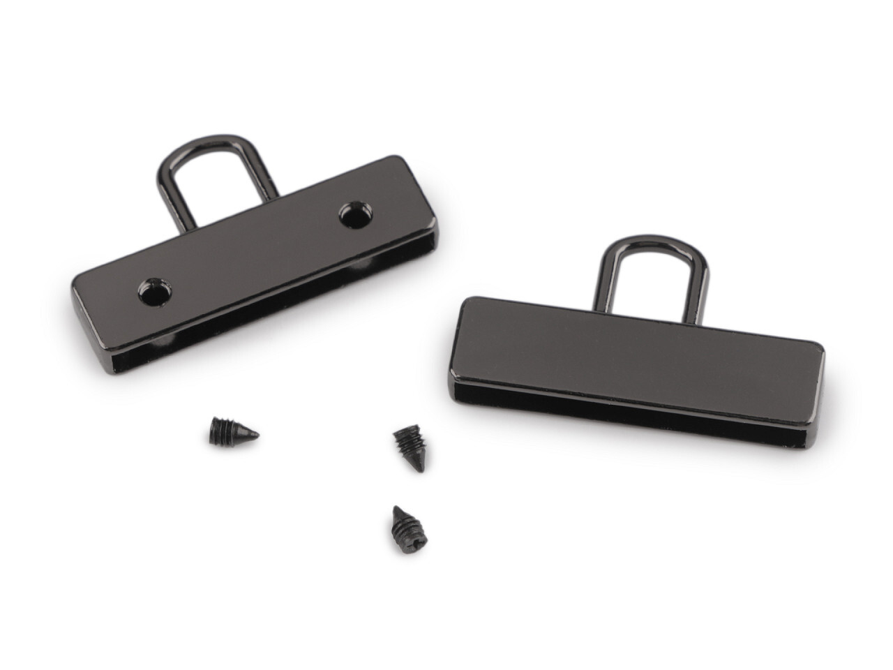Koncovka na popruhy má vysoký lesk. Přilepíte do ní konec popruhu či jiného materiálu (s tloušťkou do 3 mm), který následně uchytíte přiloženými šroubky.Koncovky se hodí na výrobu uch ke kabelkám, psaníčkům a taškám. Můžete je také využít na ozdobné střapce, designové opasky apod.Rozměry šroubku...