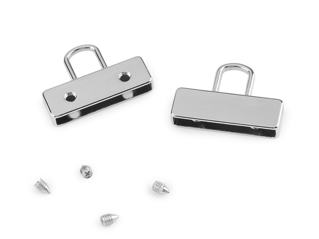 Koncovka na popruhy má vysoký lesk. Přilepíte do ní konec popruhu či jiného materiálu (s tloušťkou do 3 mm), který následně uchytíte přiloženými šroubky.Koncovky se hodí na výrobu uch ke kabelkám, psaníčkům a taškám. Můžete je také využít na ozdobné střapce, designové opasky apod.Rozměry šroubku...