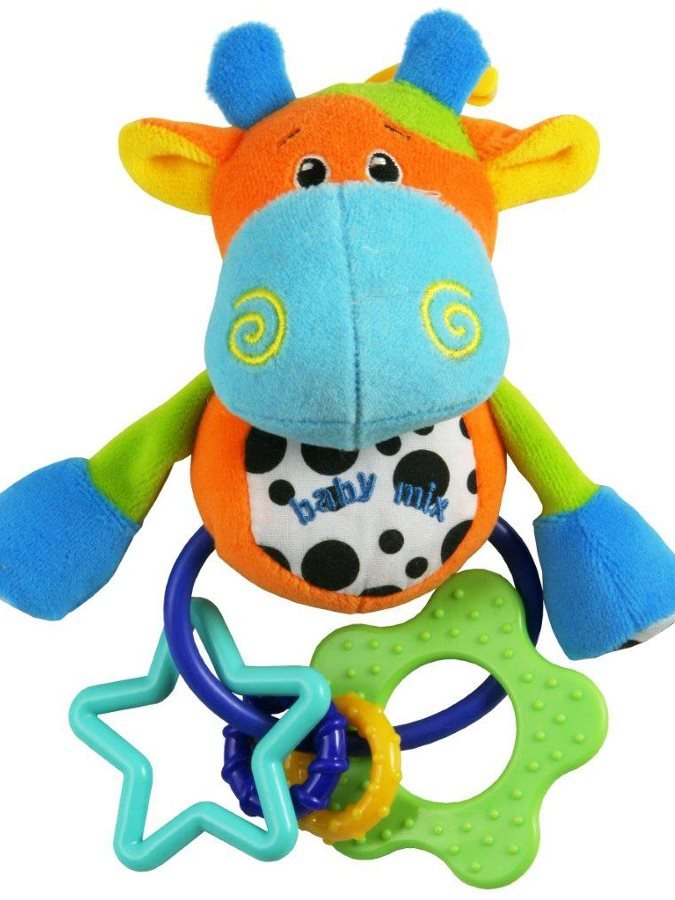 Barevná chrastící hračka pro miminka Baby Mix. Díky klipu se dá dětská hračka připevnit ke kočárku nebo postýlce. Výška cca 18 cm. Vhodné pro děti od prvních dnů života.