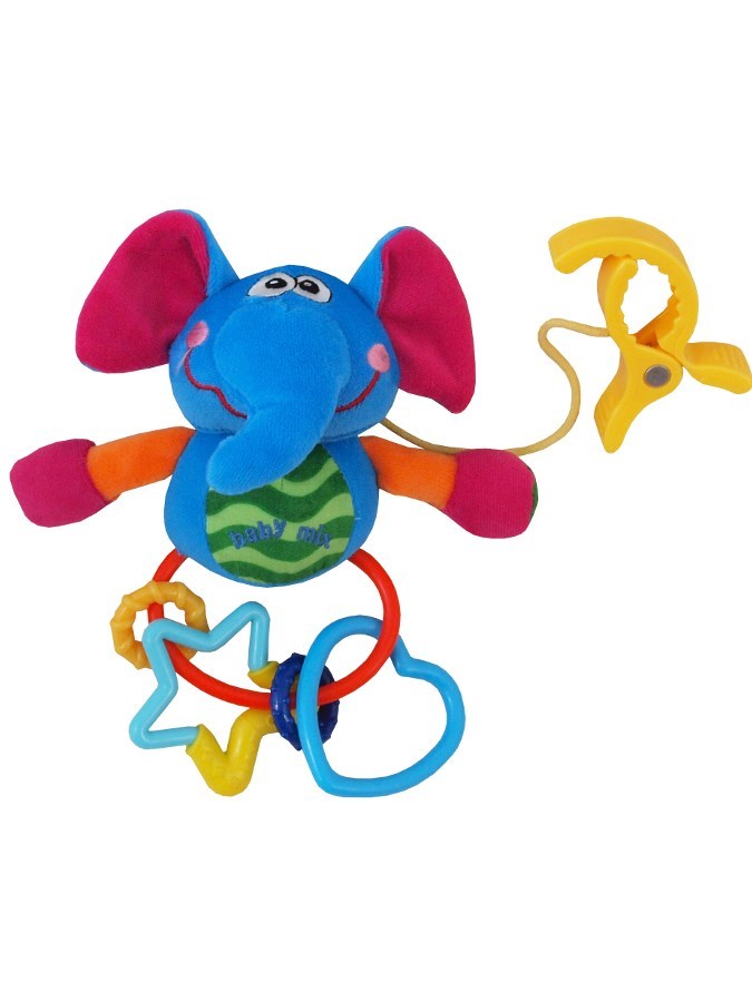 Barevná chrastící hračka Baby Mix pro miminka. Díky klipu se dá dětská hračka připevnit ke kočárku nebo postýlce. Výška cca 18 cm. Vhodné pro děti od prvních dnů života.