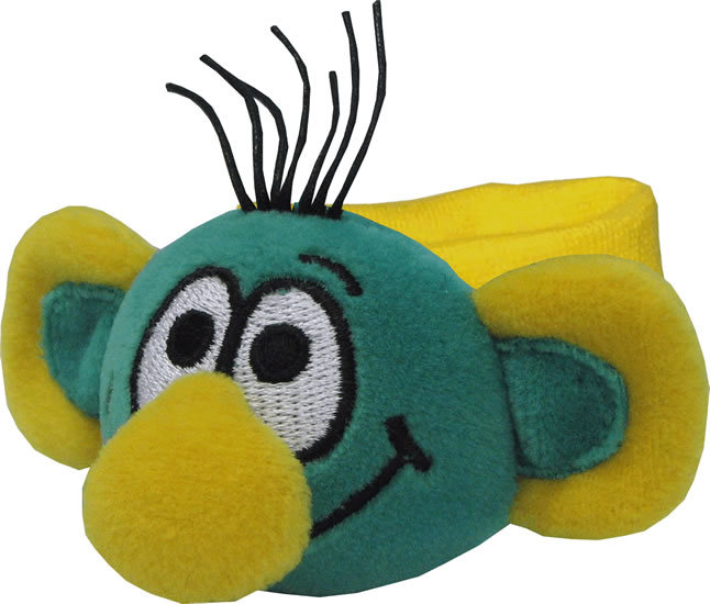Náramek s večerníčkovou postavičkou přitahuje pozornost dítěte k jeho ruce a když s ní pohne, dostane se mu odměny v podobě zachrastění.Pro děti bez omezení věku, CE