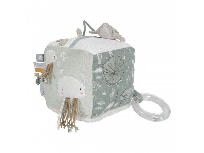 Měkká plyšová kostka Little Dutch z kolekce Ocean obsahuje krásné motivy ze života na moři a nabízí mnoho aktivit, které stimulují smysly dětí. Je toho tolik k objevování a hraní: různé textury, bezpečné zrcátko a chrastítko, která vydává zvuk při každém pohybu. Rozměry: 15 x 15 x 15 cmVhodné pro...