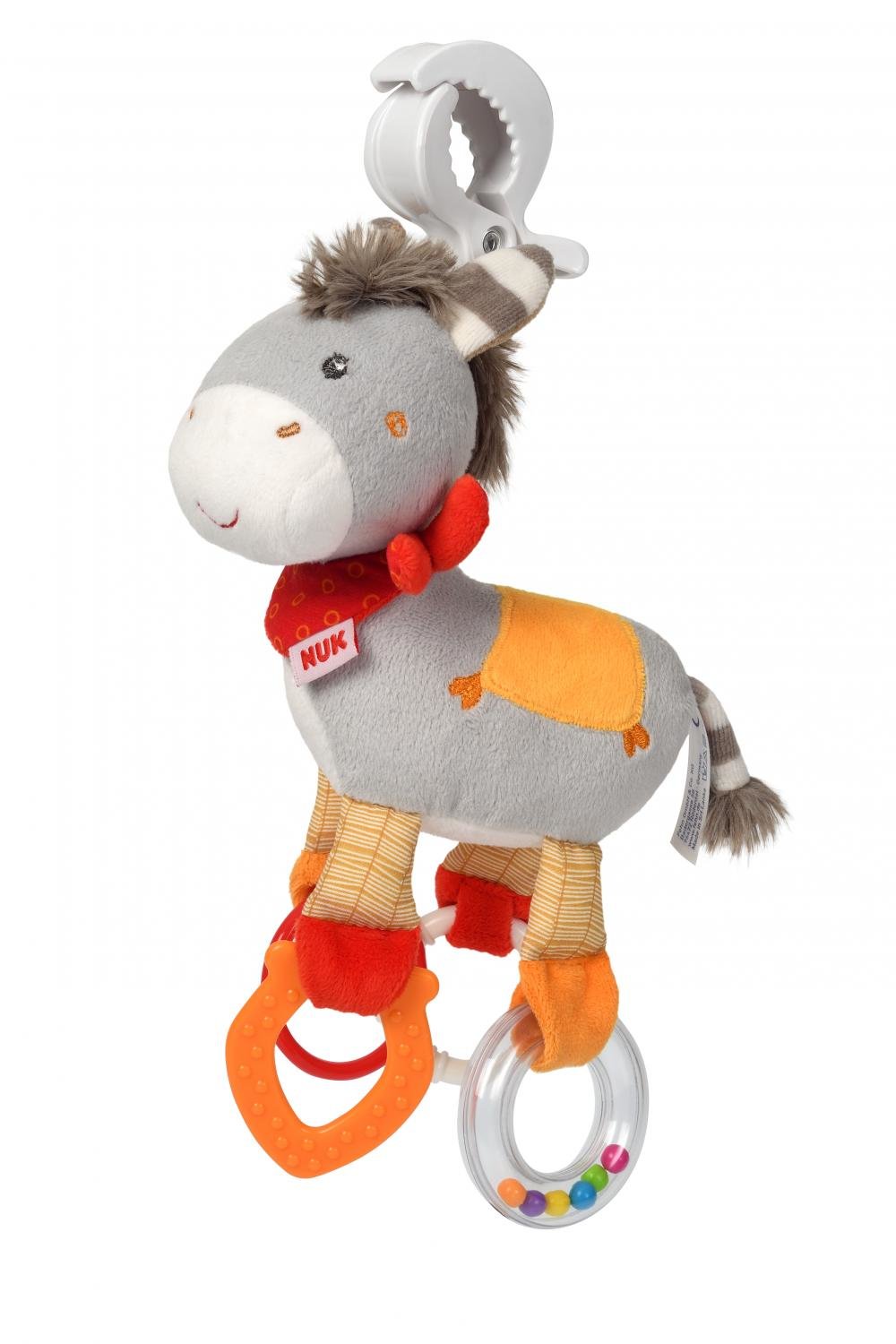 Legrací a zábavou na farmě provede děti veselý Oslík z nové kolekce Happy Farm od NUK v krásných a pestrých barvách. Dětská plyšová hračka NUK s klipem je veselá a hebká hračka, která dokáže pomocí zabudovaného chrastítka a chrastícího kroužku zaměstnat miminko v kočárku, postýlce nebo kolíbce. Kromě toho pomáhá při prořezávání prvních zoubků miminka a podporuje vývoj hmatu. Součástí hračky jsou různé povrchy, šustivé textilie a zrcátko. Díky klipu velmi snadno upevníte na kočárek, postýlku či do auta. Hračka je vyrobena z příjemného materiálu. Roztomilá hračka Oslík se tak jistě stane nerozlučným kamarádem Vašeho děťátka a díky neutrálnímu barevnému provedení je vhodný jak pro holčičku, tak i pro chlapečka. Vhodné pro děti od narození.
